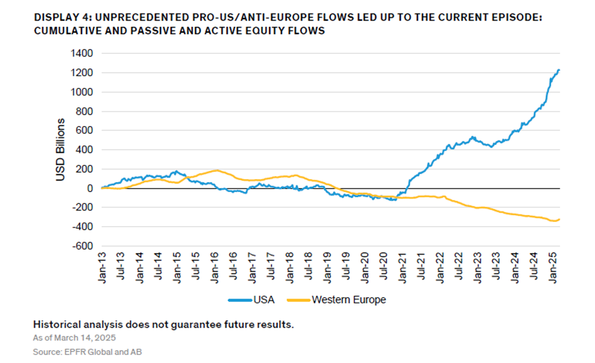 Adversarial geo-economic policies make it harder to keep pushing for over allocation to US assets and ... at the same time ...the world has gotten itself over allocated to US assets ... so if the appetite to keep re-buying into that position shifts (even if its moves slowly and incrementally as it has in China) it would have a effect at the margin for asset prices, perhaps not in the US (as there is a huge domestic capital market that is hyper efficient across almost all dimensions of risk) but moreover in markets like Europe where risk capital has been less free flowing and doesnt always find its way to the parts of the market that need it...The interesting piece for Europe will be the degree to which US capital decides to front run any shift - if the US market decides that Europe is the place to be for the next 3 or 4 years this would accelerate the upcoming capital allocation cycle ... and in our asset class being ahead of those flows is always the path to better risk adjusted returns.